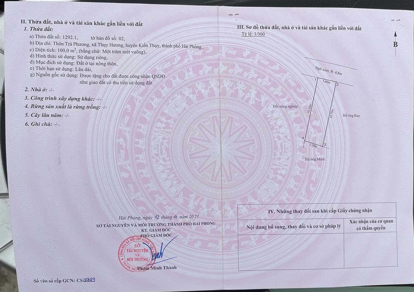 Lô đất ngay sau trường cấp 1 Thụy Hương, Trà Phương, Thụy Hương, Kiến Thụy, Hải Phòng