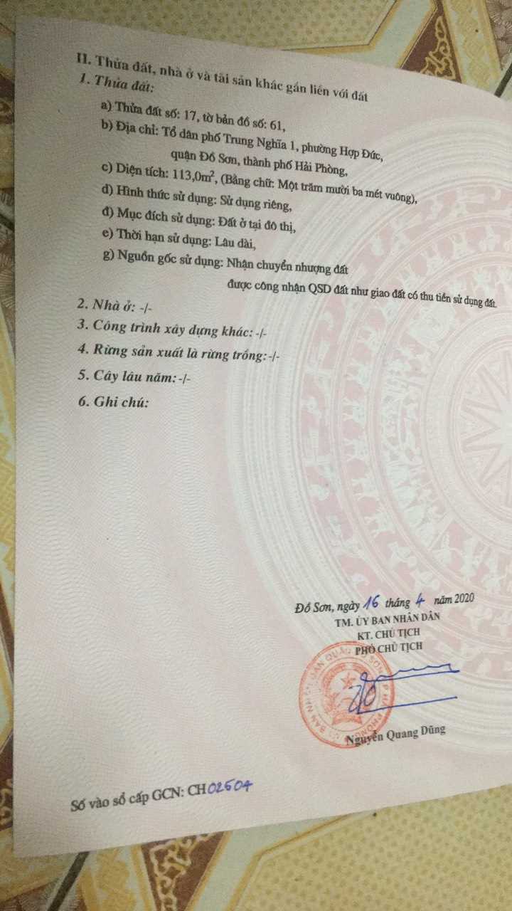 - Lô mặt đường Trung Nghĩa, Hợp Đức, Đồ Sơn, Hải Phòng. Khu vực Vip nhất tuyến . Kinh doanh sầm uất .