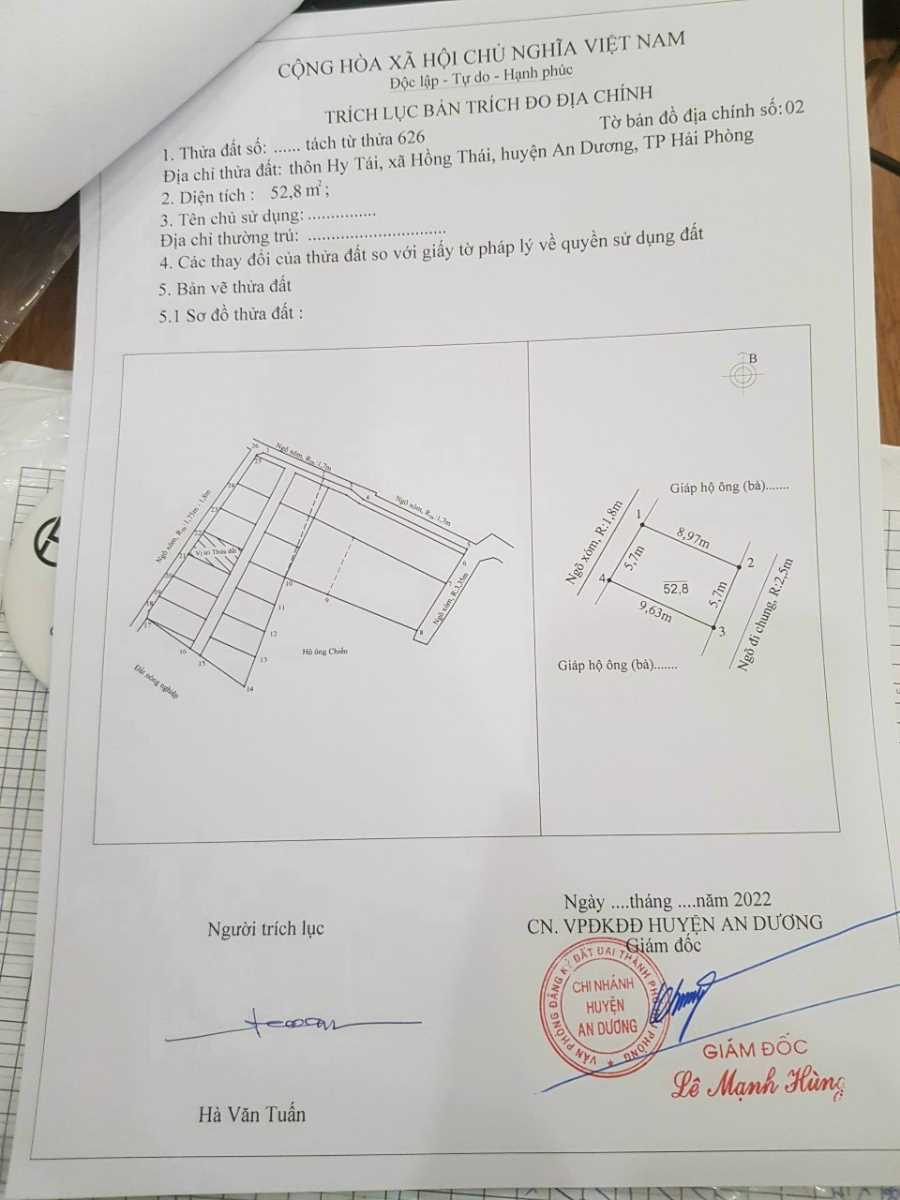 Lô Hi Tái 52,8m2 giá hủ thu 770tr