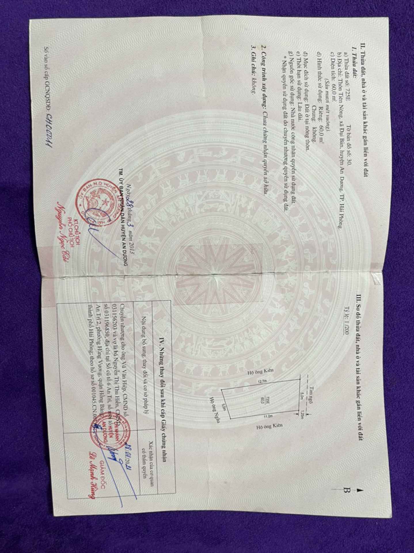 Gần trường học ủy ban cách chợ khoảng 100m gần đường chục chính xã đại bản
