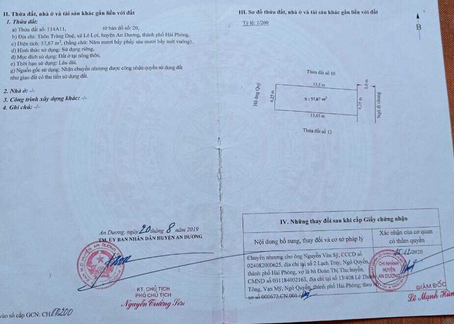 Chuyển nhượng đất thôn Kiều Thượng, xã Quốc Tuấn, An Dương, Hải Phòng (229090)