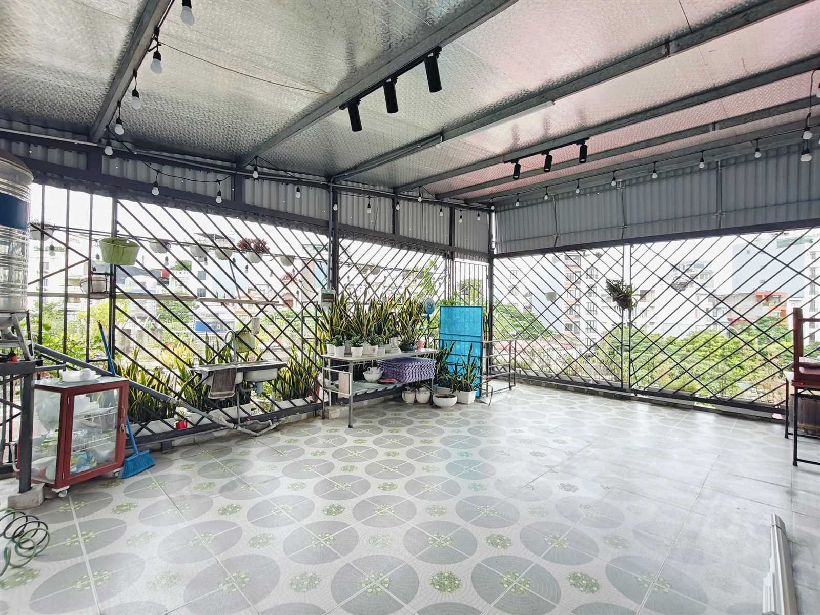 - Thiết kế nhà hài hòa, thoáng mát, trên tầng có cả một công viên cây xanh thu nhỏ.