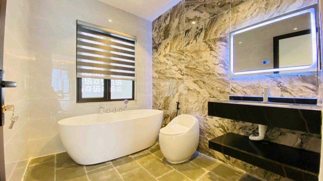 - Nhà gồm: 1 phòng khách phụ, phòng thờ, 3 phòng ngủ, phòng ăn, sân chơi, sân phơi, 4 toilet, 1 phòng master có bồn tắm view trước sau. Nhà có giếng trời thoáng mát.